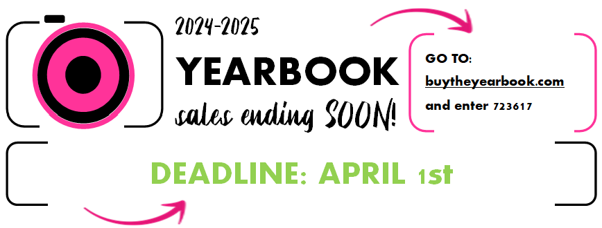 The yearbook deadline is FAST approaching! Order your 2024-2025 yearbook by April 1st!